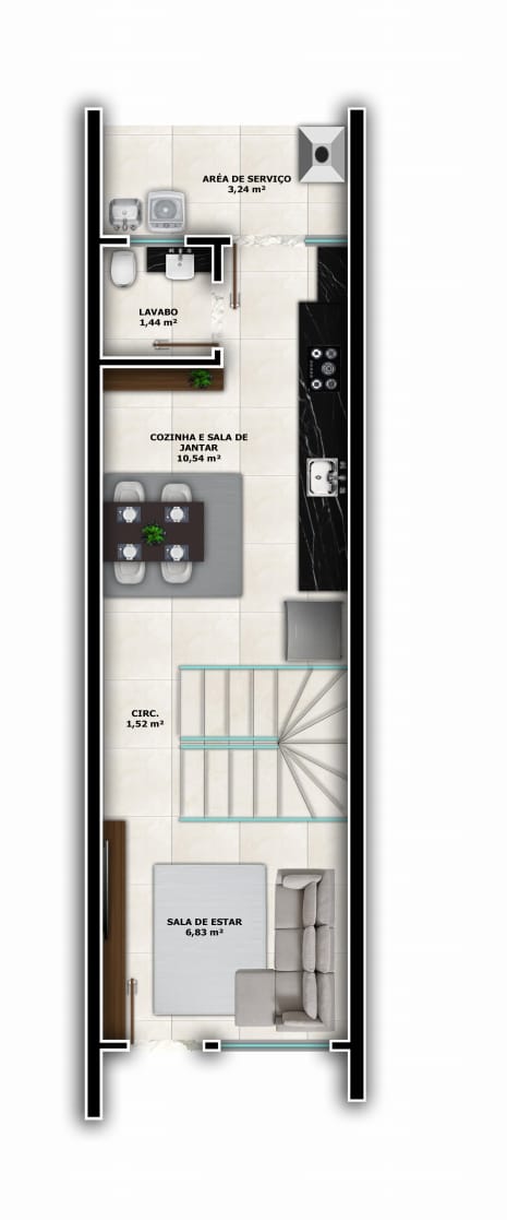 Cód: 150Área útil - 58 M²Construção 2025